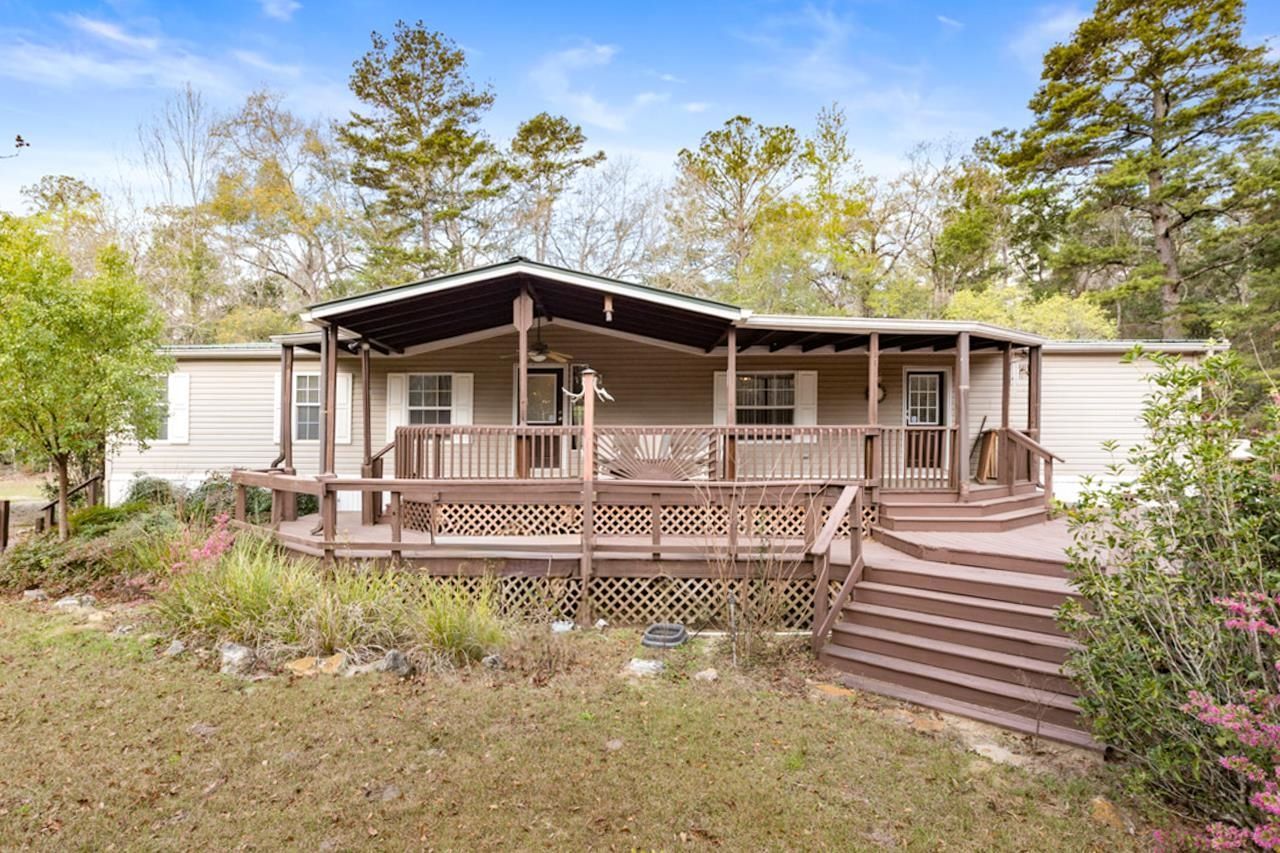 Spacious Triplewide mobile home on 5 private acres, plenty room for family and guests, 4 bedrooms, 3 baths, open floor plan. Huge master suite (12x25), additional bedroom with private bathroom. Huge deck for entertaining or just enjoying nature. Open pole barn and carport. Enjoy peaceful country living with ample outdoor space for animals, hobbies, or recreation. Conveniently located with easy access to I-10 or Hwy-27.