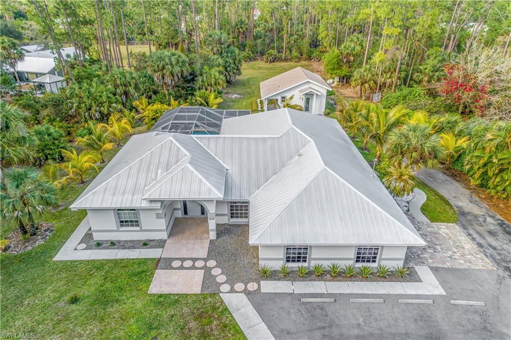 2411sf Main Home + 560sf Guest house: Discover this exceptional 2.27-acre property in the peaceful, highly desirable Logan Woods neighborhood of North Naples—a rare gem offering privacy, versatility, and endless potential in one of Southwest Florida’s most coveted locations. The primary home boasts 2,411 sf of comfortable living space, featuring 4 bedrooms, 3 bathrooms, a spacious family room, plus formal living and dining areas. The open, flowing layout is perfe...2411sf Main Home + 560sf Guest house: Discover this exceptional 2.27-acre property in the peaceful, highly desirable Logan Woods neighborhood of North Naples—a rare gem offering privacy, versatility, and endless potential in one of Southwest Florida’s most coveted locations. The primary home boasts 2,411 sf of comfortable living space, featuring 4 bedrooms, 3 bathrooms, a spacious family room, plus formal living and dining areas. The open, flowing layout is perfect for everyday living and effortless entertaining, with seamless access to the outdoors and a refreshing sparkling pool visible from multiple rooms. A sturdy metal roof ensures durability and low maintenance. Outside awaits your personal Florida paradise: a screened pool area enveloped in mature, lush landscaping, ideal for unwinding, hosting gatherings, or simply soaking in the serene, tropical vibe that defines Logan Woods living. Complementing the main residence is a versatile 560sf guest house/studio/efficiency (currently configured as a 1-bedroom unit with an open kitchen-living area, full bath, washer/dryer, and private lanai). This flexible space generates strong income potential—up to $1,600/month—making it perfect for short-term rentals, in-law accommodations, a home office, or extended family. With no HOA restrictions and abundant land, this acreage property is primed for your vision: add horses with room for pasture and stables, plant a thriving orchard, install a pickleball or tennis court, or construct an additional outbuilding to support a home-based business or workshop. Embrace the true Florida lifestyle—outdoor living, space to roam, and the freedom to customize—while being just a short drive from pristine Gulf of Mexico beaches, upscale shopping, fine dining, top-rated schools, and all the amenities that make Naples legendary. Whether you’re envisioning a multi-generational retreat, a smart investment with rental income, an equestrian-friendly estate, or a blend of all three, this North Naples acreage home delivers unmatched flexibility and location. Don’t miss this chance to own a piece of paradise in Logan Woods!