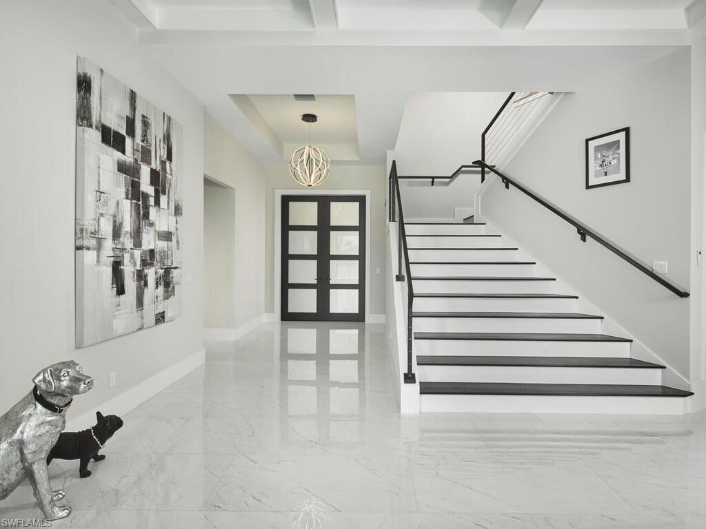Experience the pinnacle of waterfront living at 999 Spruce Court. This magnificent, custom-built home located on a highly desirable tip lot offers 5 bedrooms plus den, 5 and half baths, 3 car garage, 169 of waterfrontage, spectacular wide water views and is only minutes from Marco Islands pristine white sand beach. Upon entering the home, you will immediately be impressed by the soaring ceilings, dramatic staircase, luxurious finishes, and stunning views. The gourmet kitchen features custom c...Experience the pinnacle of waterfront living at 999 Spruce Court. This magnificent, custom-built home located on a highly desirable tip lot offers 5 bedrooms plus den, 5 and half baths, 3 car garage, 169 of waterfrontage, spectacular wide water views and is only minutes from Marco Islands pristine white sand beach. Upon entering the home, you will immediately be impressed by the soaring ceilings, dramatic staircase, luxurious finishes, and stunning views. The gourmet kitchen features custom cabinetry, large center island, gas cooktop, and spacious walk-in pantry. The main-floor master suite is a private retreat with access to the lanai and spa-like ensuite bath with dual vanities, walk-in shower, and custom walk-in closet. Guests will enjoy the convenience and privacy of the spacious cabana bedroom suite on the main floor featuring water views, lanai access, and ensuite bath. The second story boasts a large family room with wet bar, 3 additional guest bedrooms with ensuite baths, and balcony. The main living space of the home opens seamlessly to the spacious lanai. The covered area of the lanai features an outdoor fireplace, summer kitchen, multiple seating areas, and the convenience of rolldown screens. Enjoy soaking up the Florida sunshine and relaxing in the beautiful pool and spa overlooking the water. The new dock (2026) and seawall (2021) with a 20,000lb lift and 6,000lb platform lift will delight boating enthusiasts and fisherman alike. The gorgeous, tropical landscaping and outdoor lighting create instant curb appeal. Do not hesitate to make this impressive home your slice of island paradise.